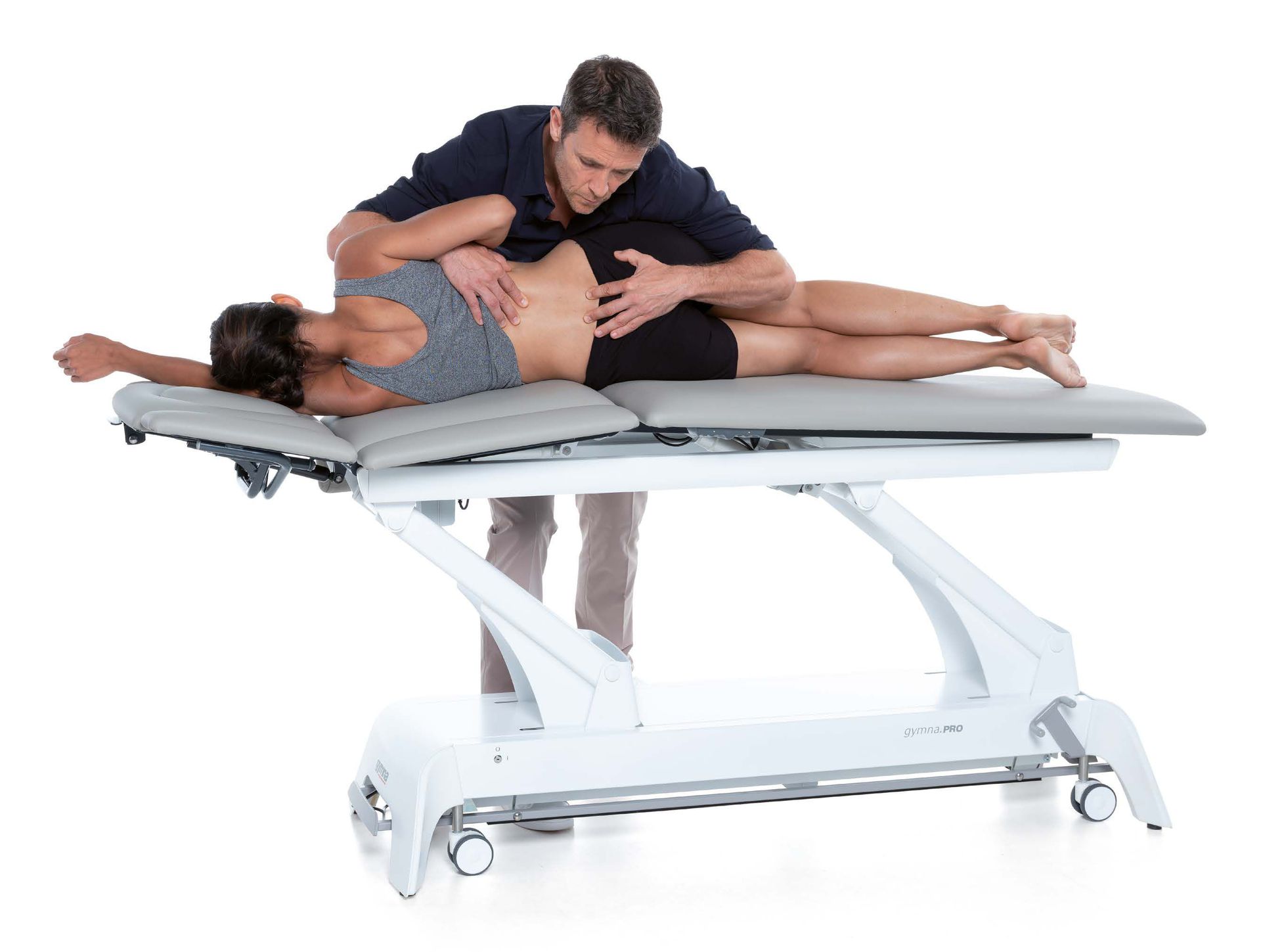 La Série T de la Gymna PRO est une table de massage en trois parties pour des traitements en position assise et allongée, combinée avec le réglage cyphose pour les mobilisations du dos. Au choix avec réglages manuels ou électriques.